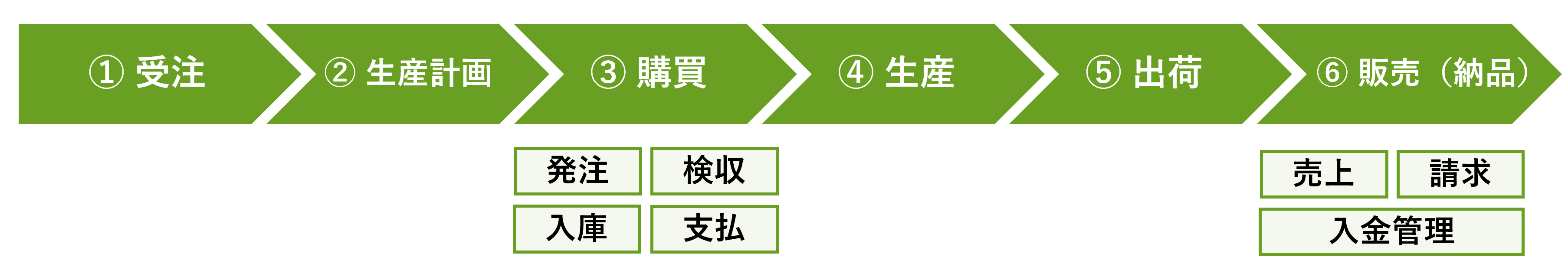 製造現場の一連の業務としては、まずお客さまから注文を受け、その内容をもとに生産計画を立案します。続いて必要な原材料を調達し、生産を行い、お客さまに納品することが一般的な流れではないでしょうか。
