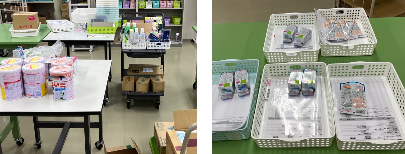 作業②注文ごとの商品を確認しながらピッキングを行い、注文単位で分けて置く。