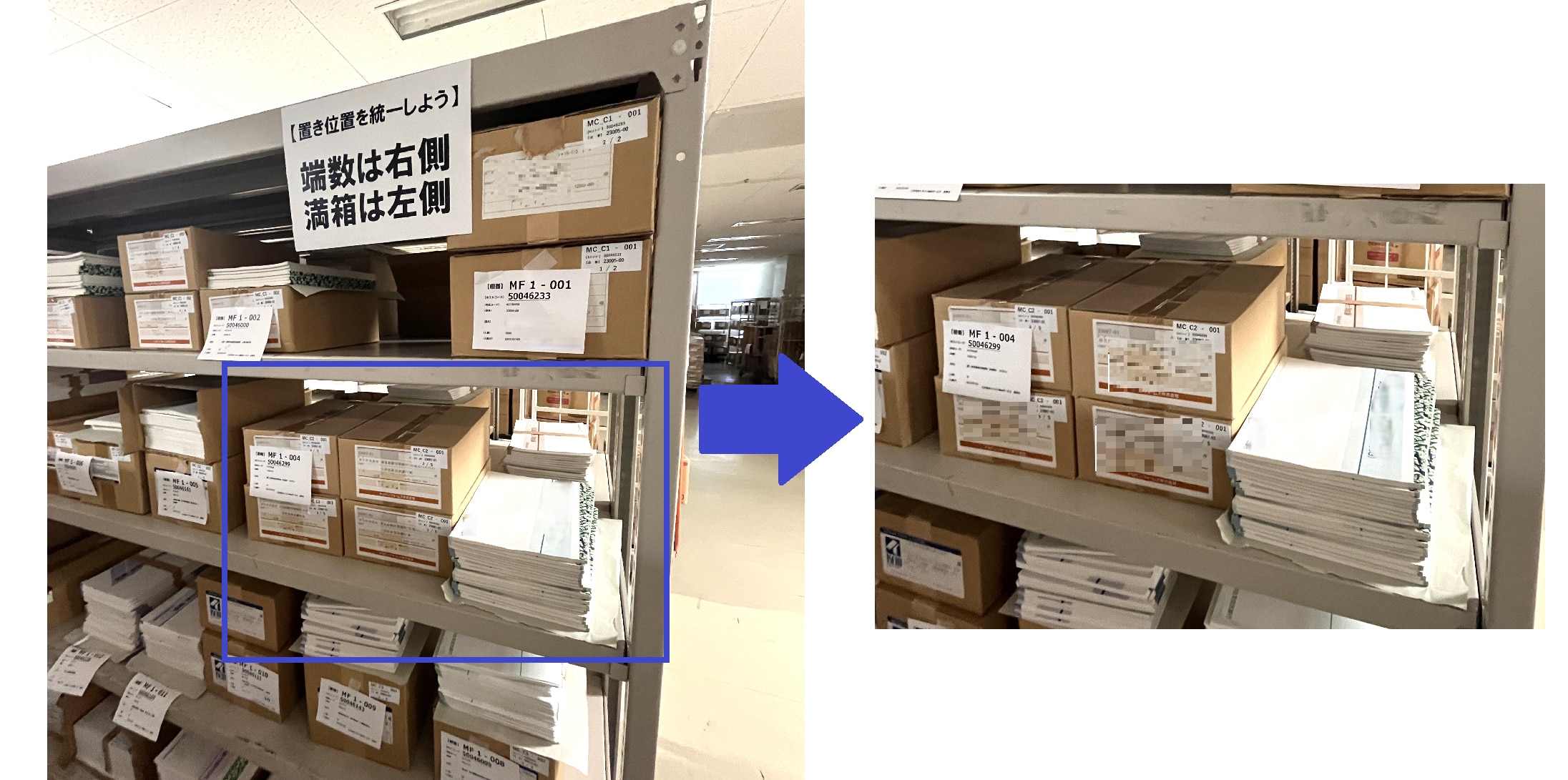 ここで効果を発揮するのが、先述した「一定数量ごとに仕分けて保管する」というルールです。定数ルールで在庫を置くことで「1箱50冊入りが4箱あって、1山10冊が3つ横にあるから230」というように、短時間で残数の確認が可能になります。ピッキングも、一定数量ごとの山を基準に取れるので作業時間の短縮につながります。