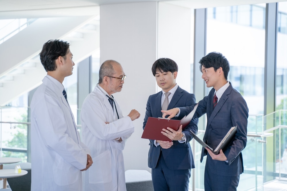 MR(医薬情報)、MS(医薬品卸販売)、医療機器営業をはじめとする「メディカル営業」は、人々の健康を守る医療機関に欠かせない物品提供の窓口となる社会貢献度の高い職種です。顧客の医療機関の医師をはじめとする医療従事者・事務局担当者が必要とする情報やモノを最速でお届けできるよう、ハードな外回りの最中でも社内外のさまざまな関係者とコミュニケーションを図っています。