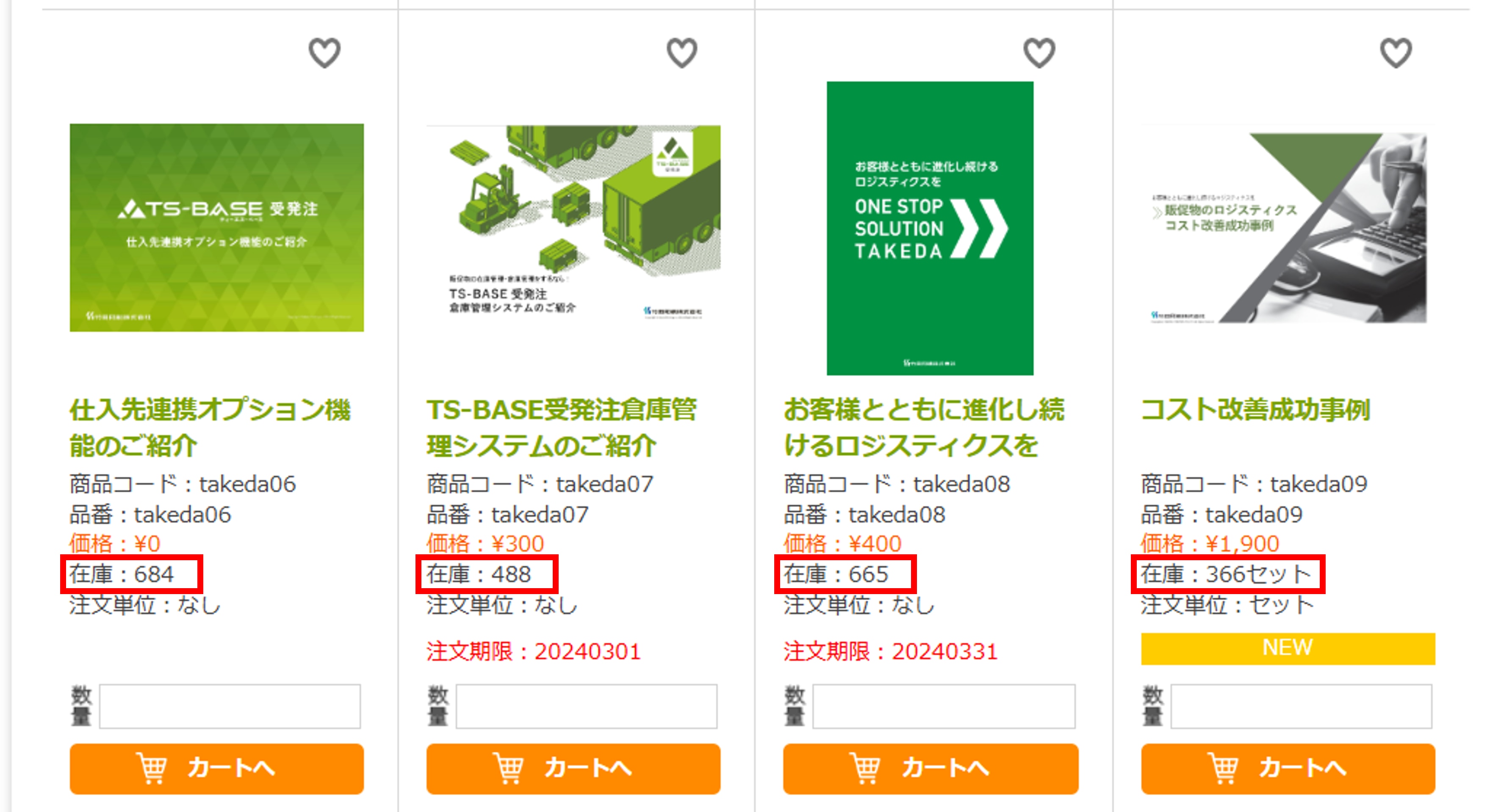 注釈:TS-BASE 受発注 注文サイト上の在庫数表示。