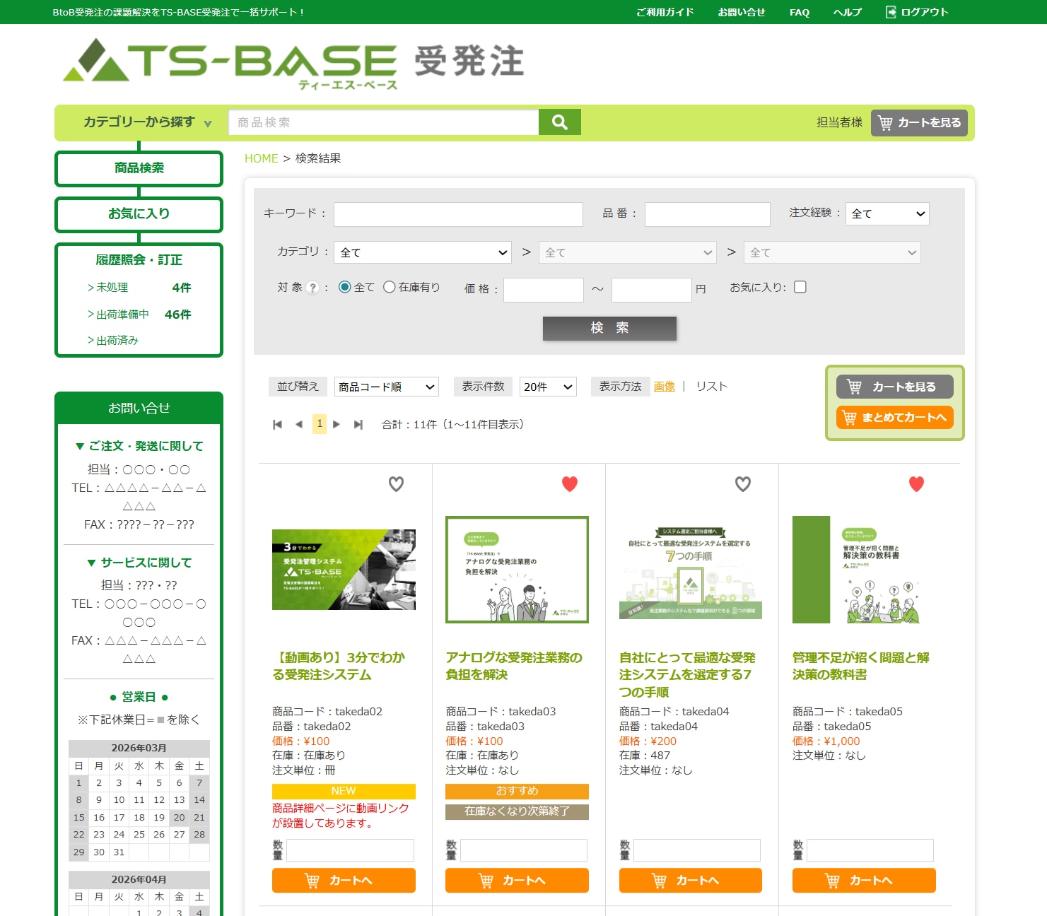 自分だけの注文環境を持てる「TS-BASE 受発注の注文サイト」