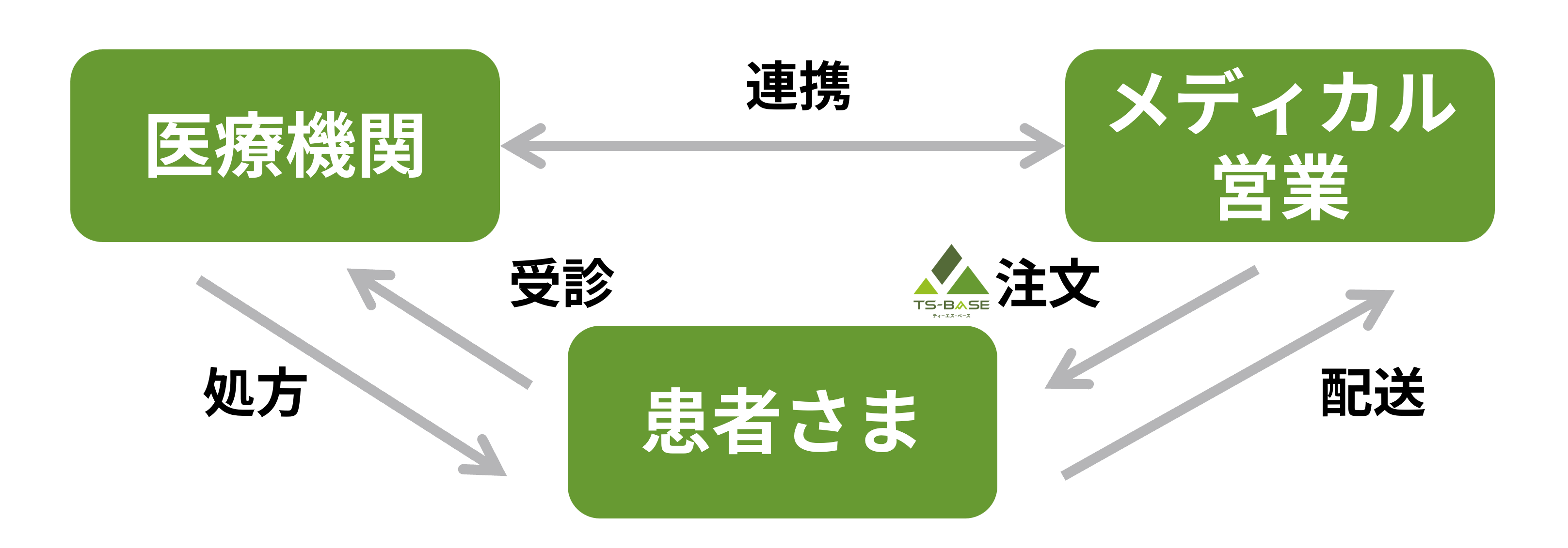 医療機関と連携をして、在宅で療養する患者さまへ必要な医療機器をお届けする「BtoBtoC商流」にも、TS-BASE 受発注は活用されています。多忙なご家族や体が不自由なかたにとって、24時間どこからでも注文可能なWeb注文へのニーズは高まっています。